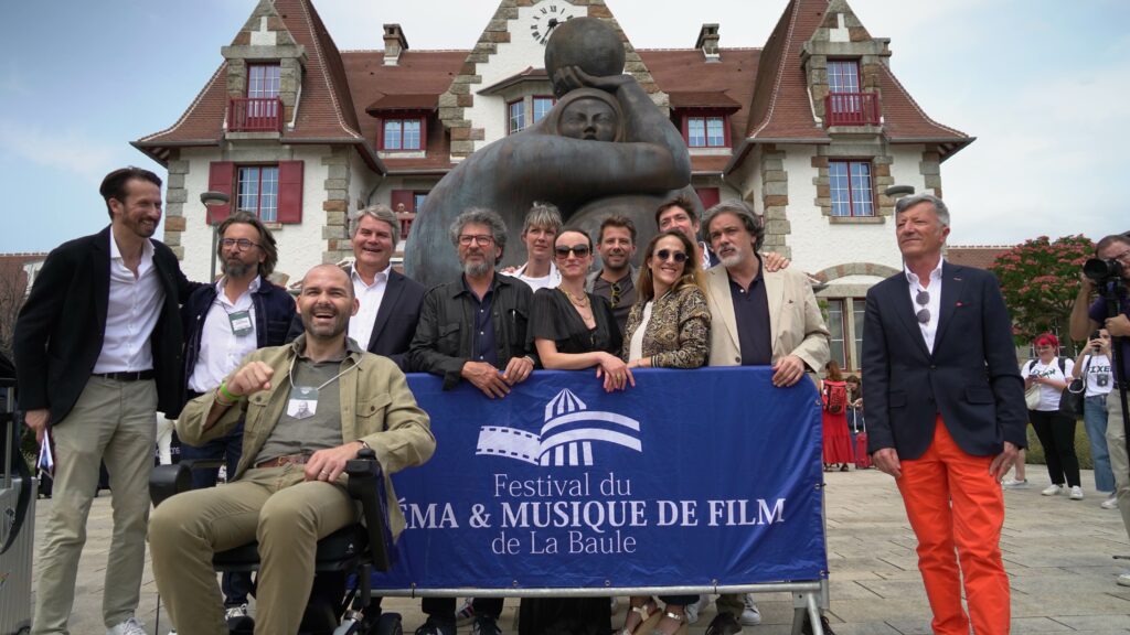 Étaient présents sur la photo : Radu Mihaileanu (Président du Jury), Irène Dresel (jury), Victoria Bedos (jury), ainsi que Alex Jafffay (chroniqueur TV et ancien membre du jury), Olivier Goy (en fauteuil roulant, autour de qui a été réalisé le film de Stephanie Pillonca « Invincible Été » sur son histoire personnel. Film qui sera projeté au Gulf Stream en sa présence jeudi 29 à 14h30), Franck Louvrier (Maire de La Baule), Christophe Barratier et Sam Bobino (fondateurs du Festival) et les membres de l’équipe du Festival.